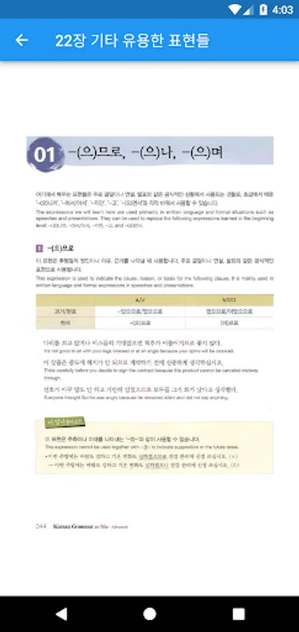 - Include advanced grammar points and example sentences for advanced Korean students,