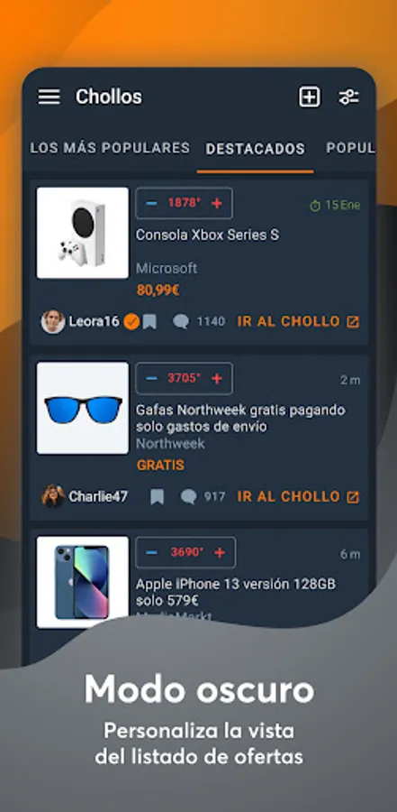 - Follow the activity of your publications and interact with your favorite Chollometro users.