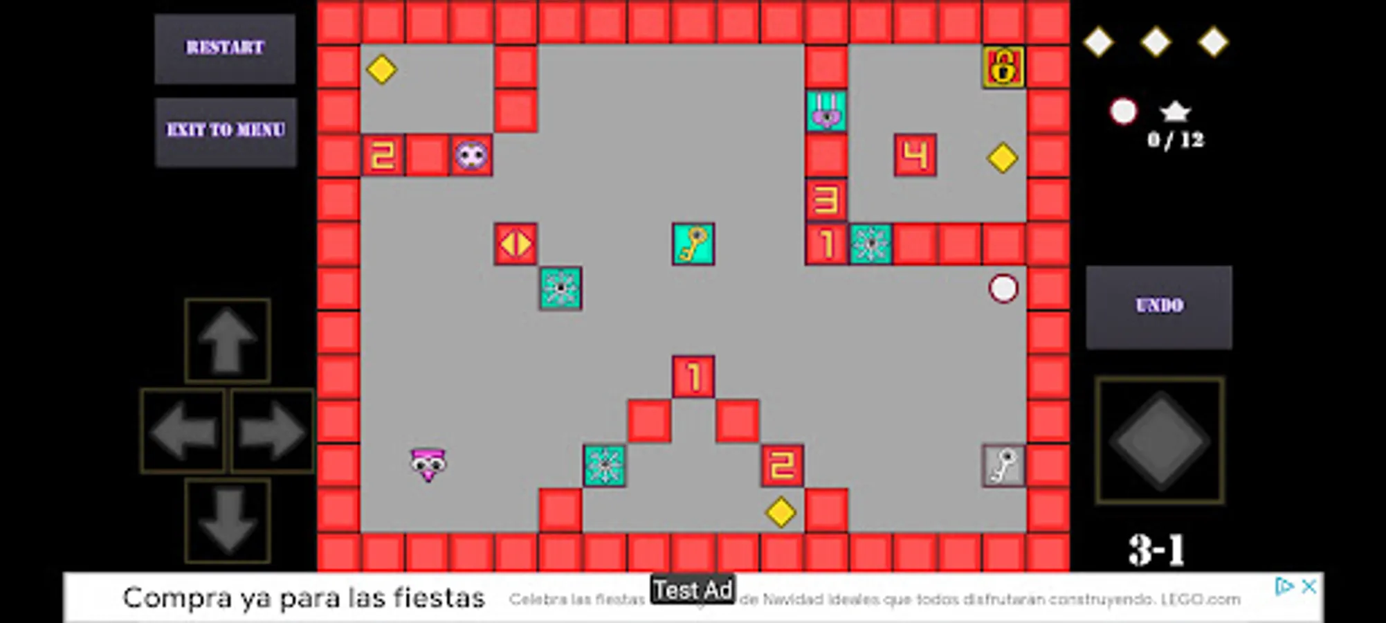 Think about how to move the blocks to catch all the elements and enter the goal. If you do it in a smaller number of movements than is marked, you will be able to complete that level 100%, with the 3 badges.