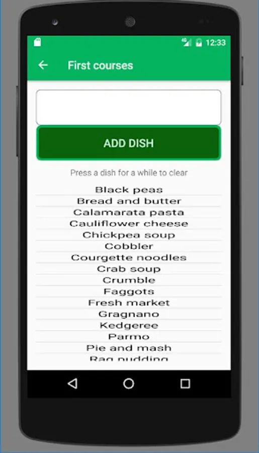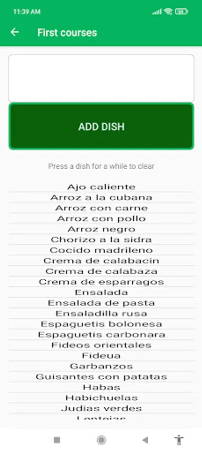 There is a list created by default of some first and second courses. But you can add your own dishes and recipes without limits, to have more options of what to cook.