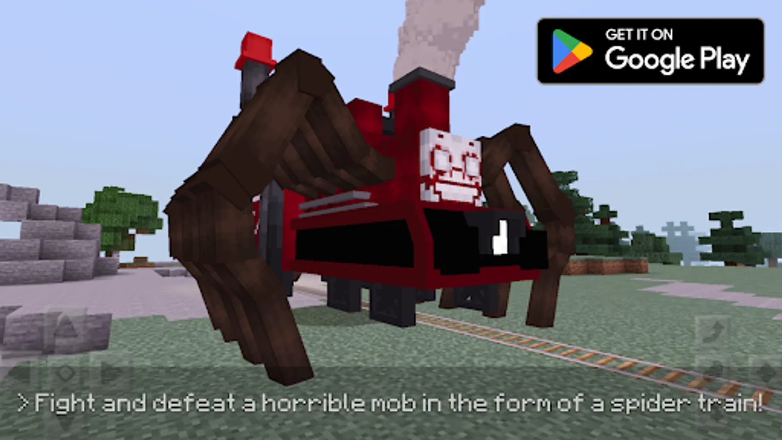 This mod for MPCE with this scary spider train will be best played on maps with railroads, which you will find in our selection of horror addons. We also encourage you to play this mod Choo Choo Charles for Minecraft with your friends - share the MCPE horror experience with them! Also our app contains another other horror mods for Minecraft: the roblox doors mod, bendy dark revival mods and few Rainbow Friends addons for MCPE.
