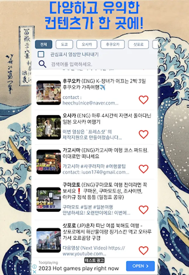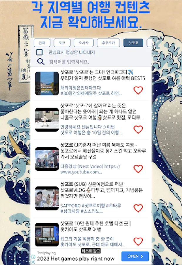 각 지역별 다양한 여행정보를 매일매일 업데이트 하고 있으니 참고부탁드립니다.