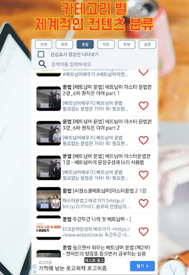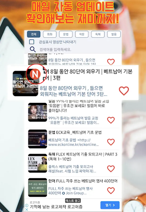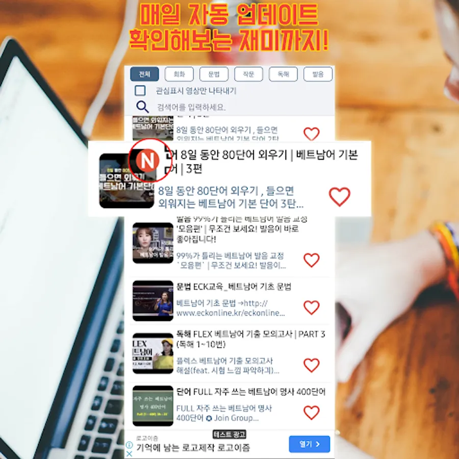 베트남 시작단계부터 숙련단계까지 매일 업데이트 되는 컨텐츠 학습영상을 통해 단련하시길 바랍니다.