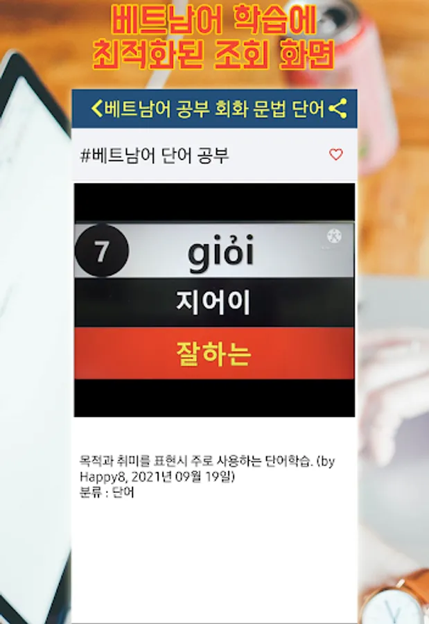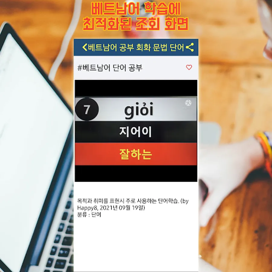 베트남어에 관한 학습을 이 어플을 통해 시작해보세요. 다양한 회화, 문법, 작문, 독해, 발음, 단어, 듣기 공부를 경험하세요.