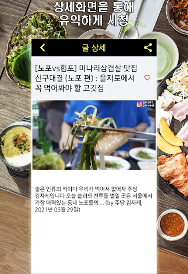 지금 설치하셔서 삼겹살에 관한 컨텐츠를 맘껏 감상해보세요.