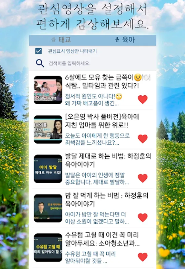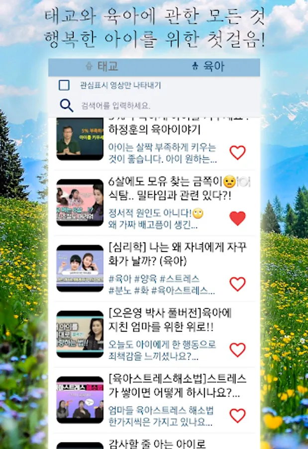 출산후 우울증, 스트레스부터 어떻게 해야 건강한 아이로 자랄 수 있는지 각 분야의 선생님, 전문가의 영상을 쉽고 간편하게 보실 수 있어요.