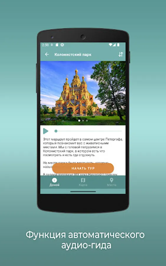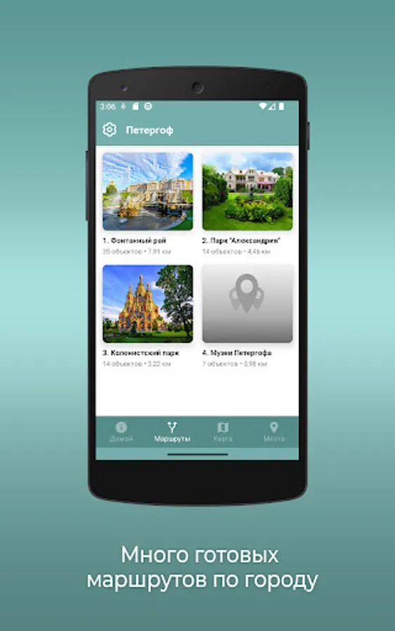 Tourist guide around the city of Peterhof with hiking trails and sound informational accompaniment. All materials in the application are unique - high-quality photos, author's texts and routes. Now your Peterhof guide is always at hand even without Internet access!