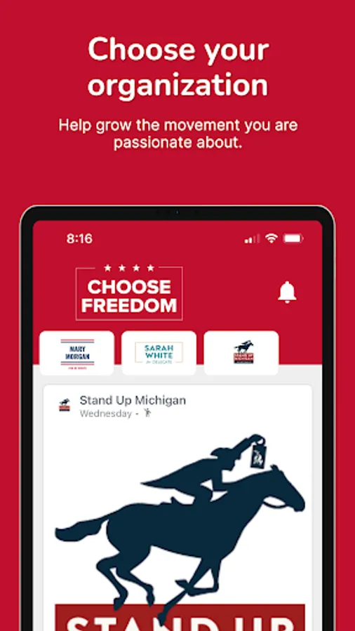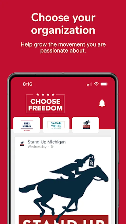 Choose Freedom app helps unify individuals, groups, and all Americans around a single theme, not associated directly with any political affiliation or party, creating a movement that millions of Americans will be able to join.