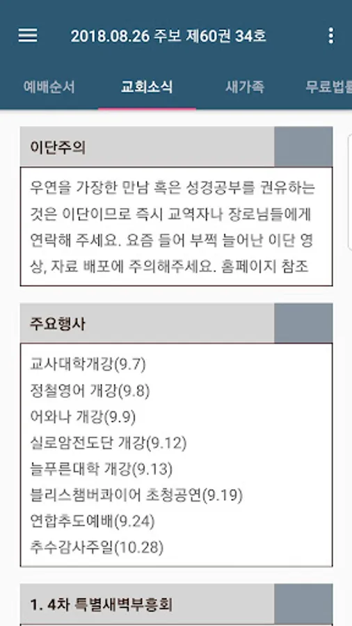 It is a smart newsletter that replaces paper jubo, which has been synonymous with waste of the church in the meantime. In the era of the Smart Age, the church can use smart devices to add convenience and efficiency to the church ministry and the church life of the Saints, and save resources and church finances. Icheon Sungkwang Church is a smart church that takes the lead in this church innovation.