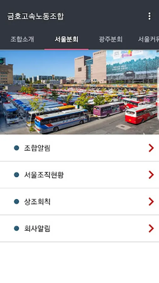 It is a full-fledged trade union application that has menus such as union introduction, media plaza, notification plaza, participation plaza, welfare guide,