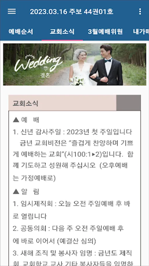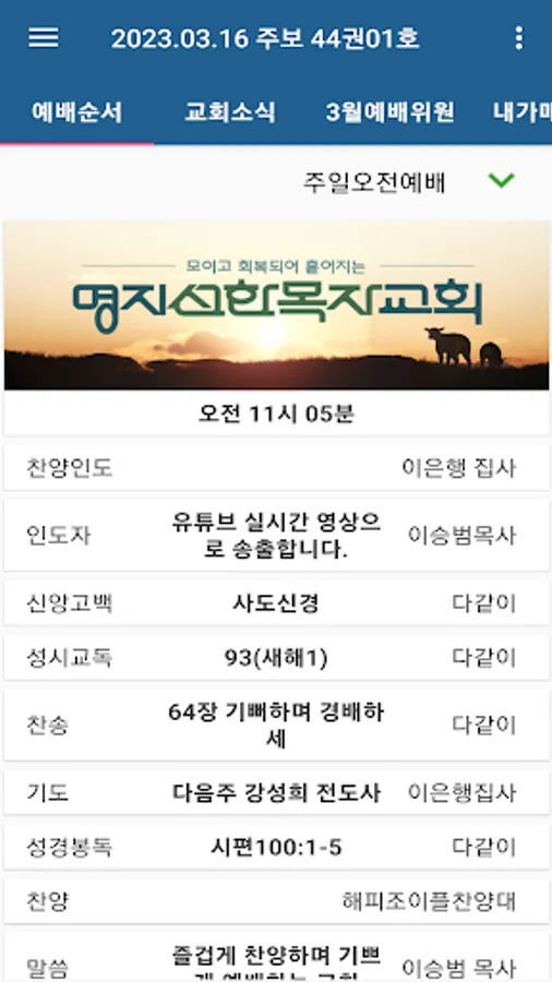 It is a smart bulletin that replaces the paper bulletin, which has been synonymous with church waste. In the smart era, the church can add convenience and efficiency to the church ministry and the church life of the saints by using smart devices, and can save resources and church finances. Myongji Good Shepherd Church is a smart church that takes the lead in these church innovations.