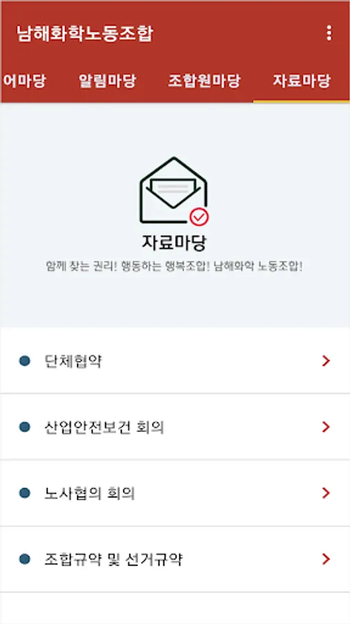 Namhae Chemical Labor Union app (application). This app can only be used by members.