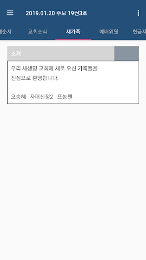 It is a smart newsletter that replaces paper jubo, which has been synonymous with waste of the church in the meantime. In the era of the Smart Age, the church can use smart devices to add convenience and efficiency to the church ministry and the church life of the Saints, and save resources and church finances. The New Life Church is a smart church that takes the lead in this church innovation.