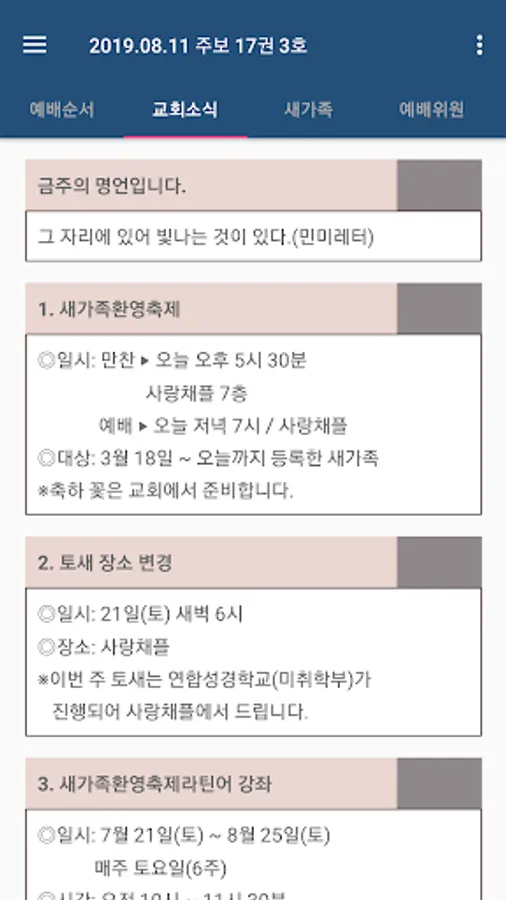 그동안 교회의 낭비의 대명사였던 종이주보를 대체하는 스마트주보입니다. 스마트시대를 맞이해서 교회도 스마트기기를 이용함으로써 교회사역과 성도들의 교회생활에 편리성과 효율성을 더할 수 있고 자원과 교회 재정도 절약할 수 있습니다. 부산나눔의교회는 이러한 교회 혁신에도 앞장서 나가는 스마트한 교회입니다.