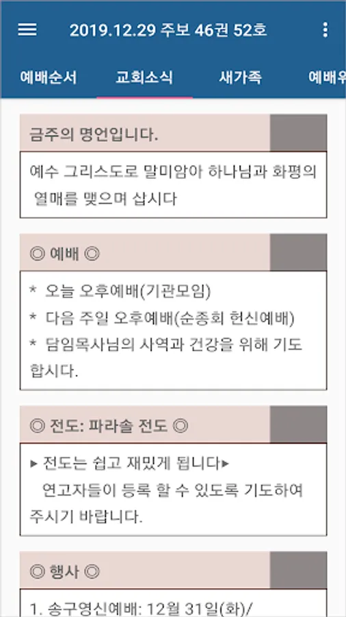 It is a smart bulletin that replaces the paper bulletin, which has been synonymous with waste in the church. In the smart era, churches can also use smart devices to add convenience and efficiency to church ministry and church life of members, and to save resources and church finances. Seongnam Together Church is a smart church that takes the lead in such church innovation.