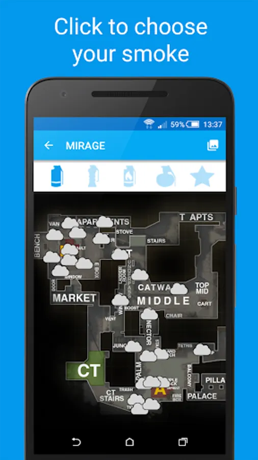 Over 1500 movies that show you different ways to throw granades for all of the most popular maps in Counter Strike, handed to you in the easiest way possible. This app allows you to easily look up smokes even when you are in the middle of game and constantly growing database of movies is automatically updated every time you start an application.