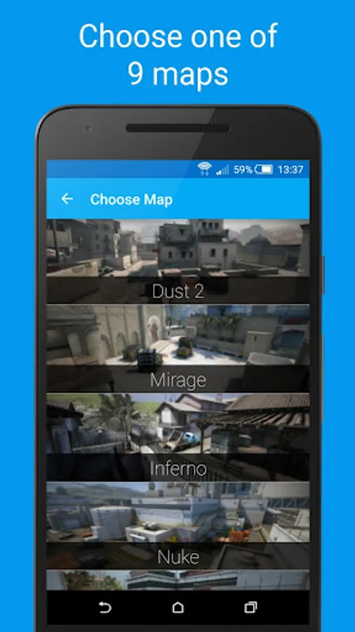 • Support for all competetive maps (Dust2, Mirage, Inferno, Tuscan, Nuke, Cache, Overpass, Ancient, Anubis, Train, Cobblestone).