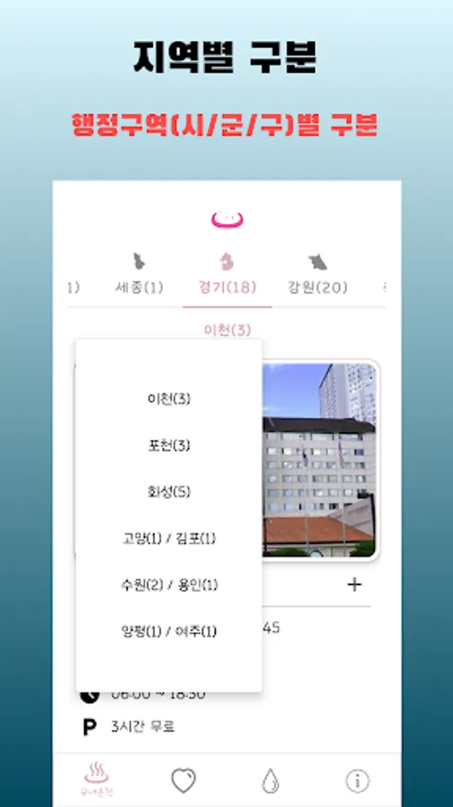 To help you easily check if there are hot springs near your residence or place of visit, hot springs are classified by city/county/district, and you can also check the number of hot springs located in the area.