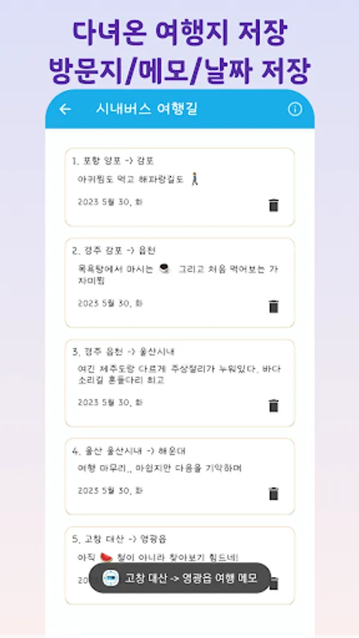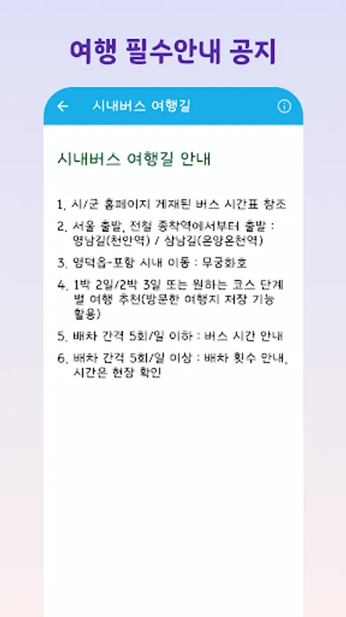 By using only city buses, not express/intercity buses, we recommend a unique trip that you cannot experience in crowded big cities, such as the scenery and simplicity of Korea's small towns and the warmth of the elderly.