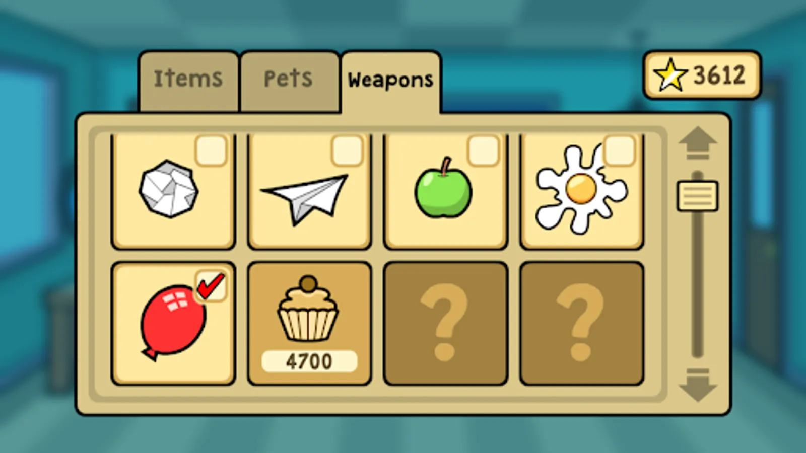 Upgrade your weapons for increased prankster fun. Use Paper airplanes, rotten eggs, water balloons, catapults and more to prank the teacher.