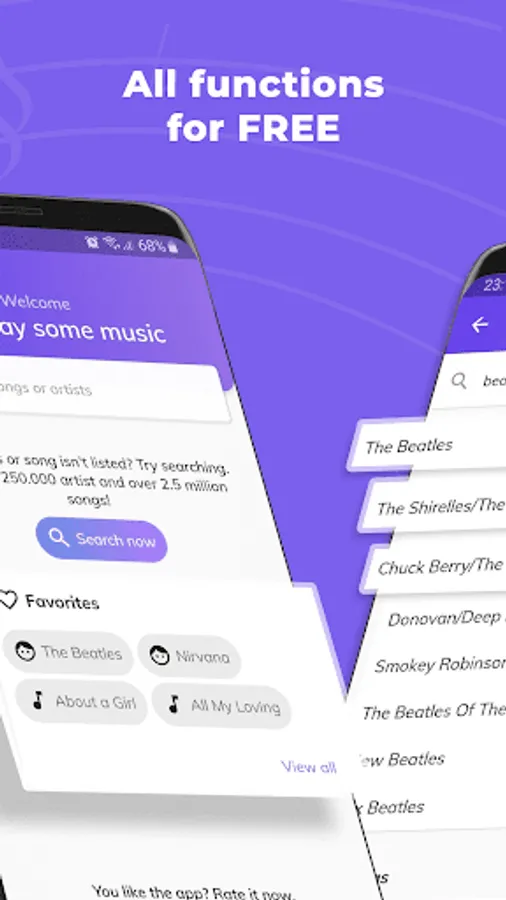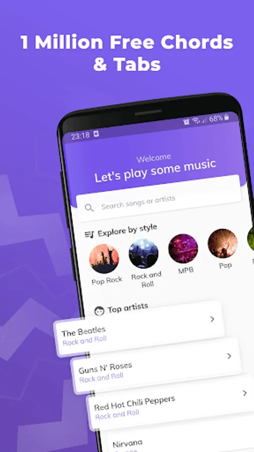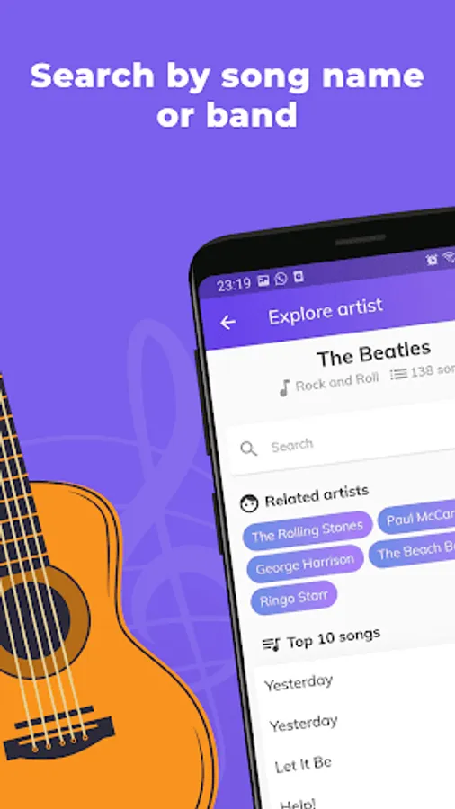 Search for songs by type, artist, and rating. Play more than 1 million of popular songs in their original chord sound and discover new ones!