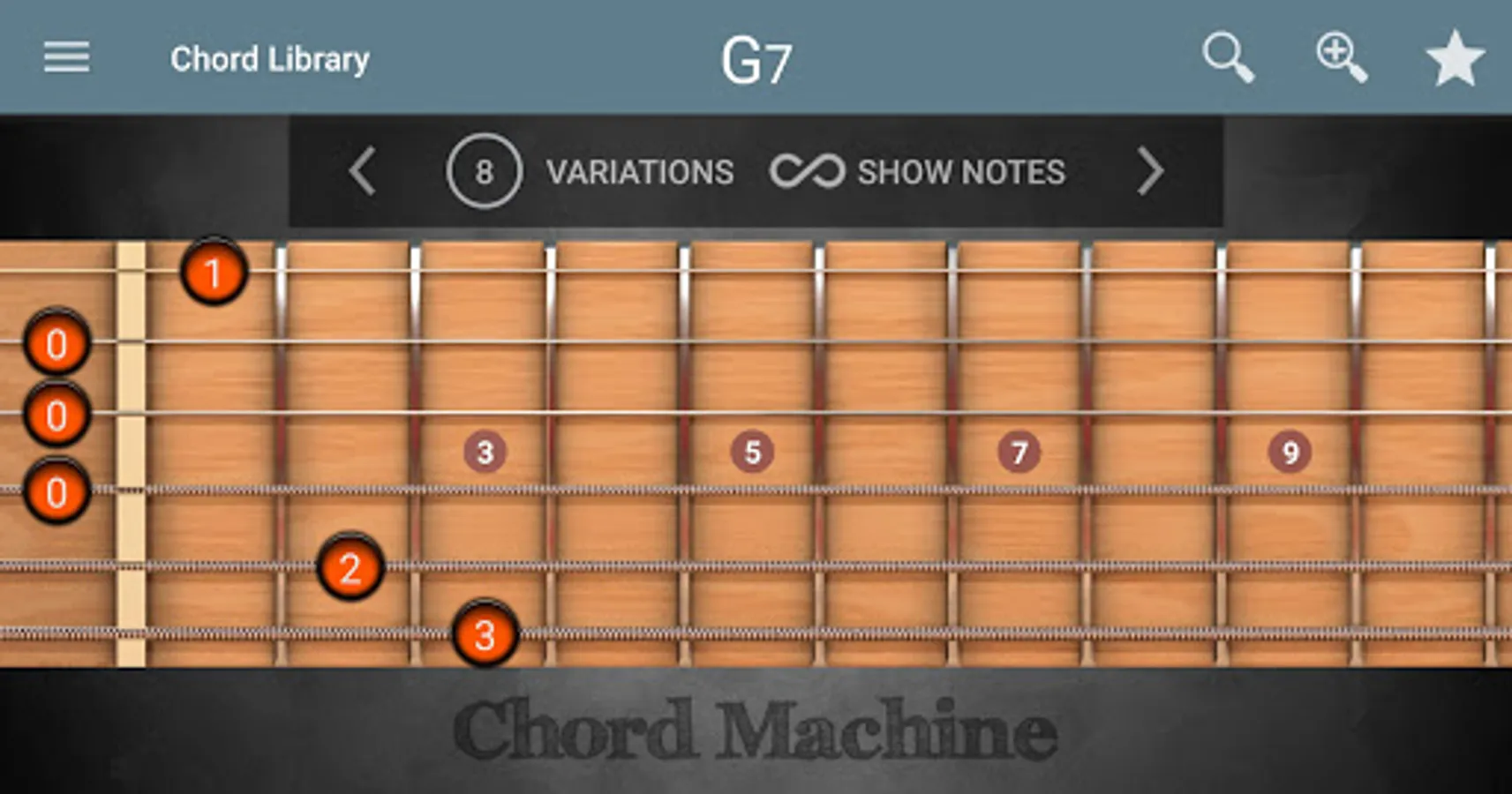 Chord Machine is the simplest and most user-friendly Chord Finder, Virtual Guitar Simulator app. You don't get lost in menus to find a chord, unlike other apps. Chord Machine can find hundreds of thousands chords, which are dynamically generated based on your input. Enter the name of the chord and you are good to go. Save your favorite chords and Play Guitar on your device.