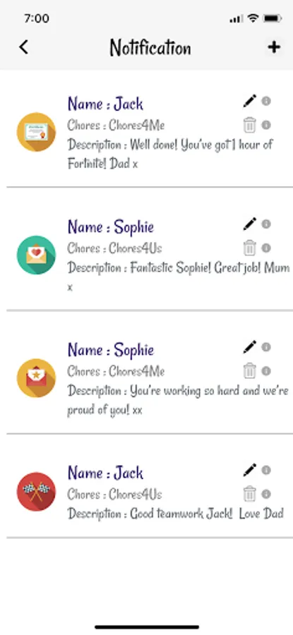 • Parents can pre-program encouraging messages to be sent to their child when they complete chores
