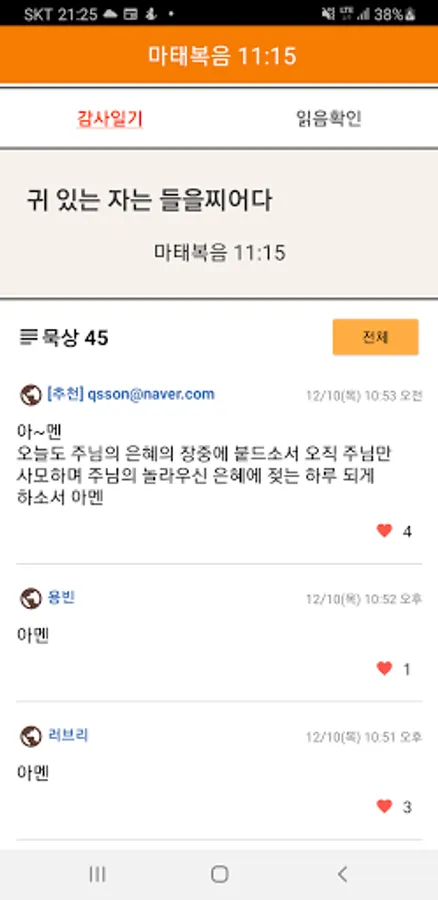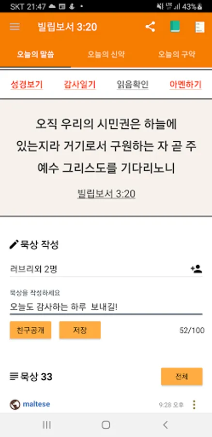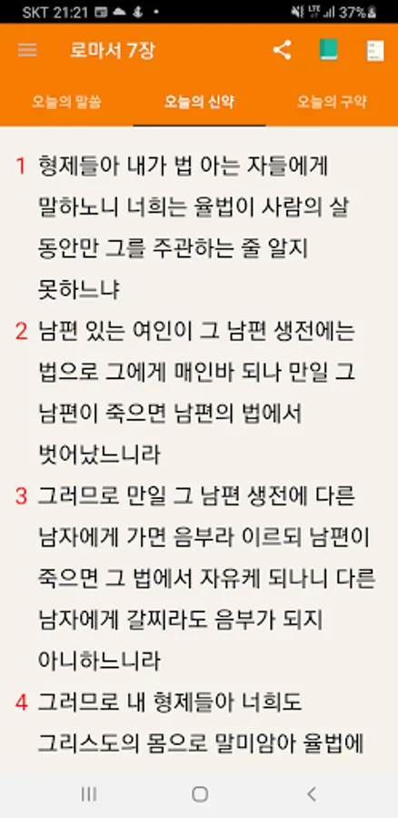 The copyright of the 'Korean Version of the Bible' used in this application is found in the Korean Bible Society.