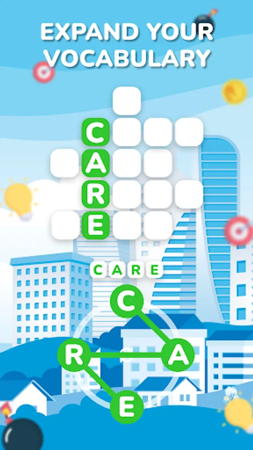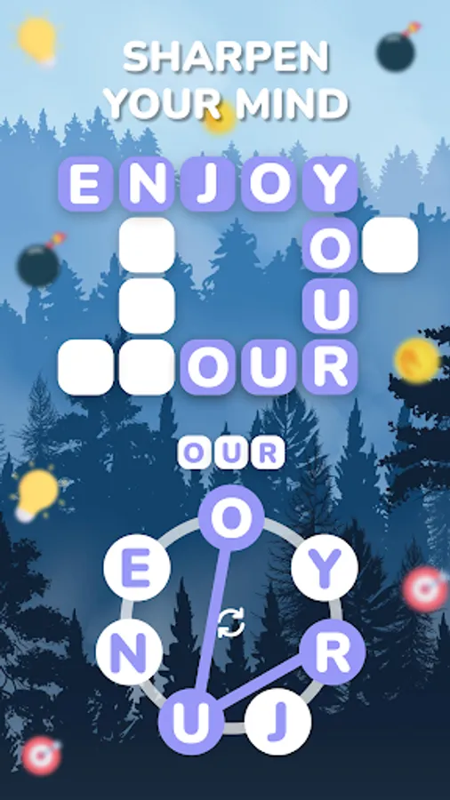 Swipe the letters, fill the blocks, enjoy magnificent backgrounds and learn something new every day. This beautiful game provides both brain training and great relaxation! Starting with only three letters, you will advance in solving crossword puzzles and easily cope with harder and harder levels!