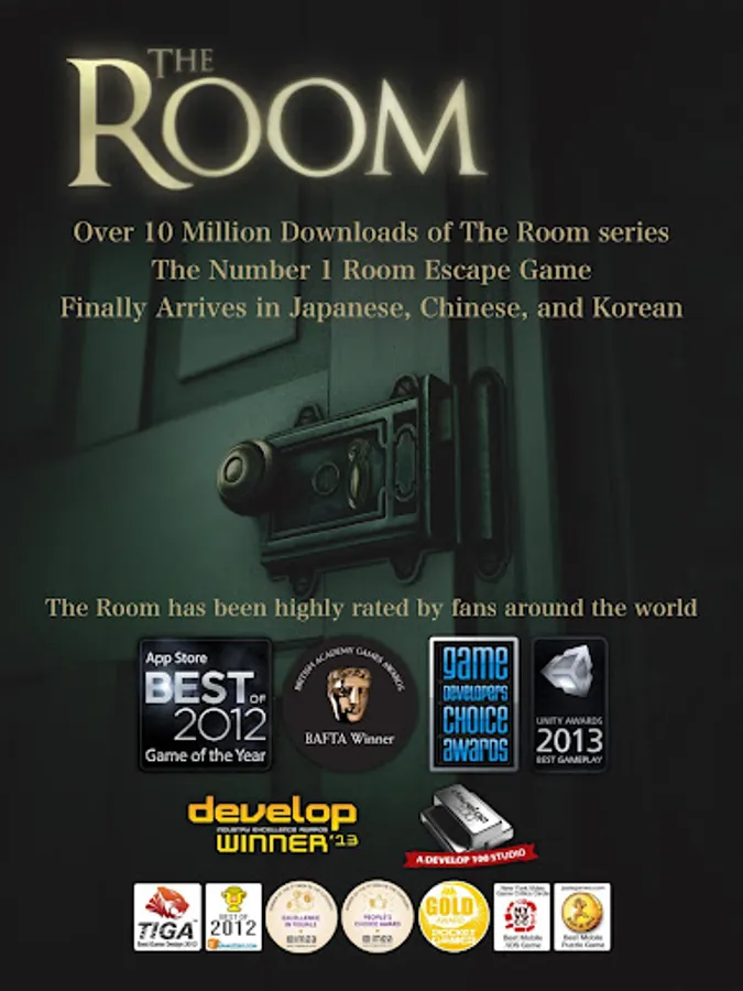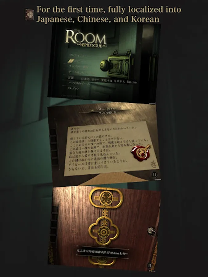 The Room is brought to you in Japanese, Chinese, and Korean for the first time by Chorus Worldwide Games Limited.