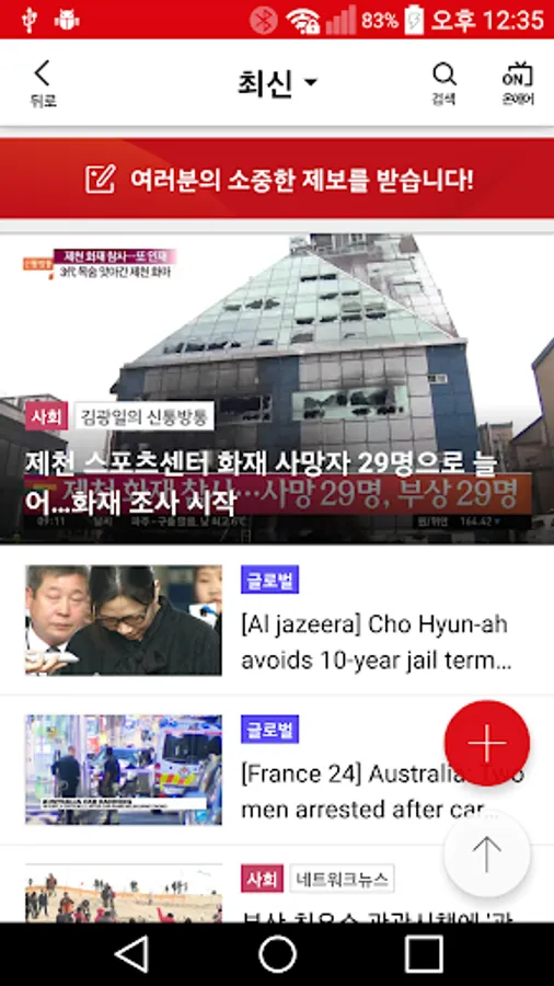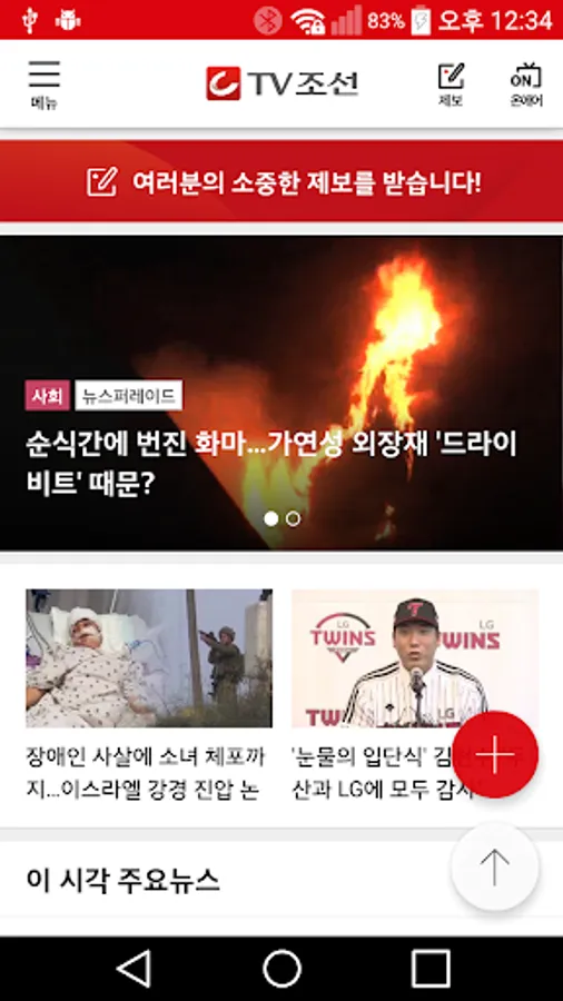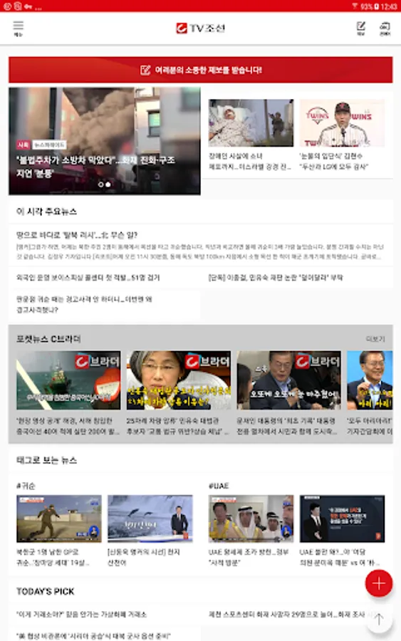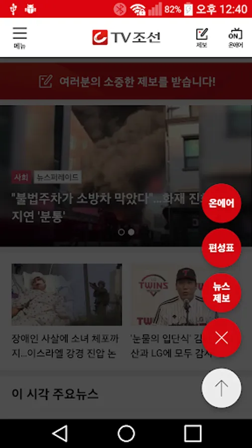 1. News Home: You can see the main news from the convenience of the home screen, you can move easily through the floating button on the Air, schedule, news tip.