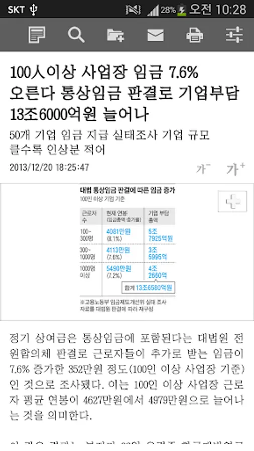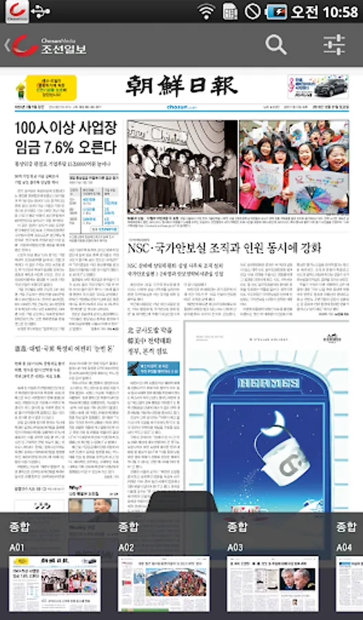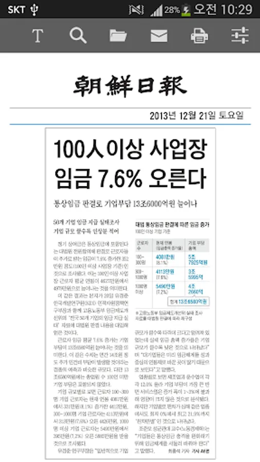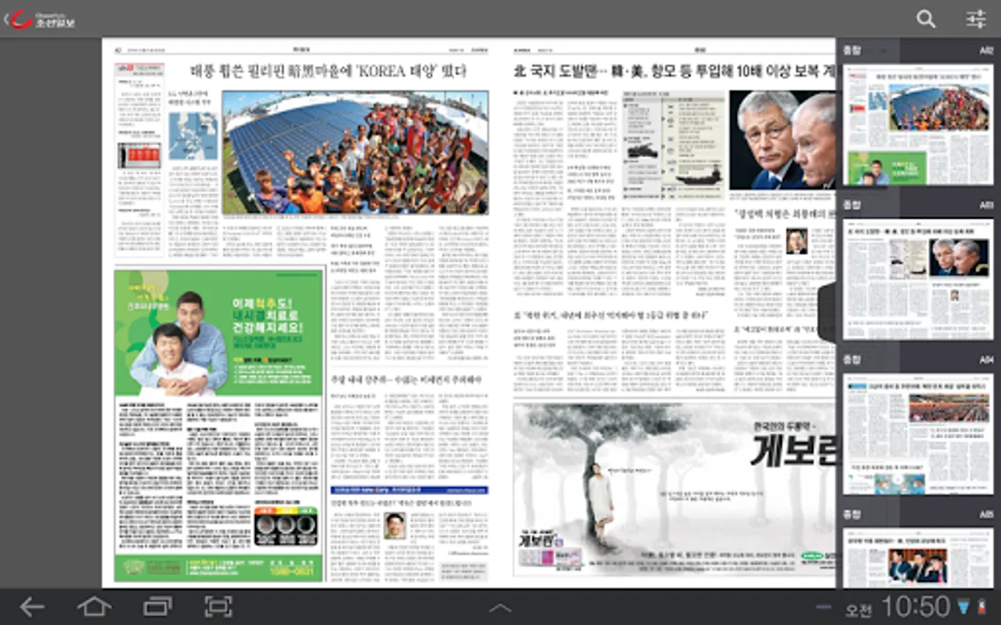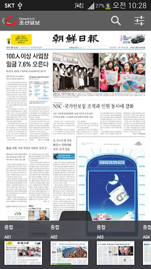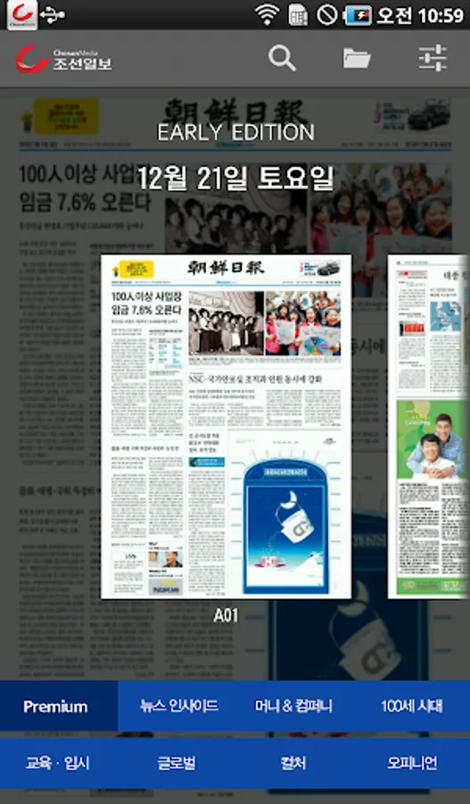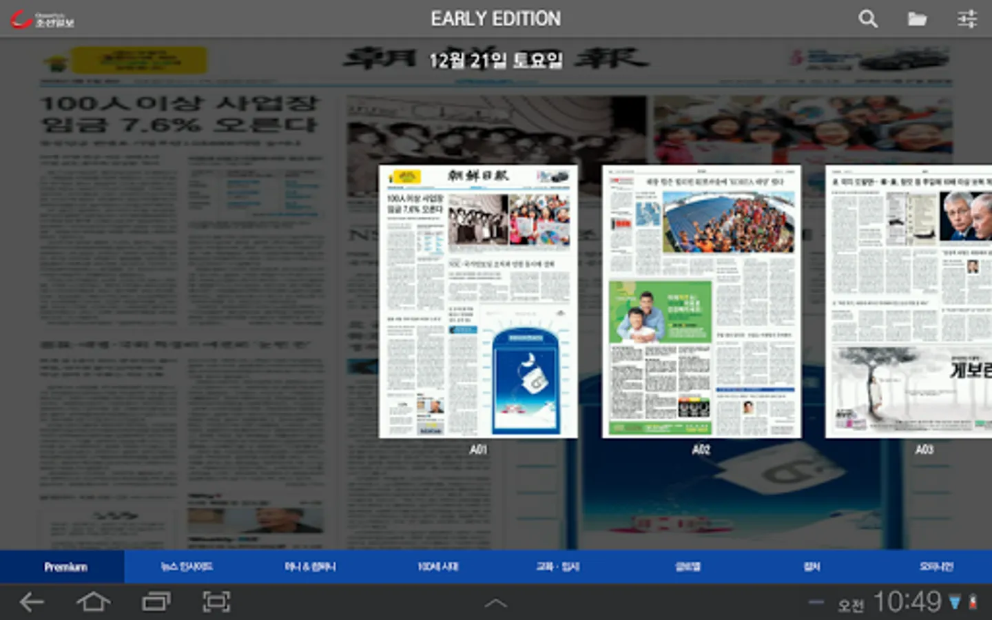 'The Chosun Ilbo early edition' reproduces the newspaper page on the digital screen based on the experience of the Chosun Ilbo, which introduced the world's first 'Smart News Paper'. Taking advantage of the characteristics of smart devices, it is also equipped with scrap, search, keyword setting, and print functions. You can also print articles remotely from your smartphone through a preset printer, or save your favorite articles to your mobile device through the scrap function.
