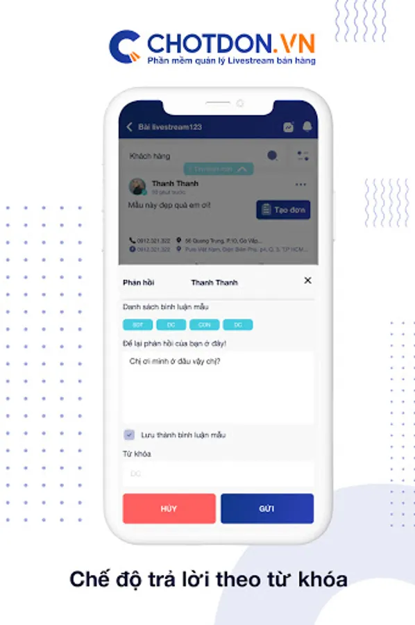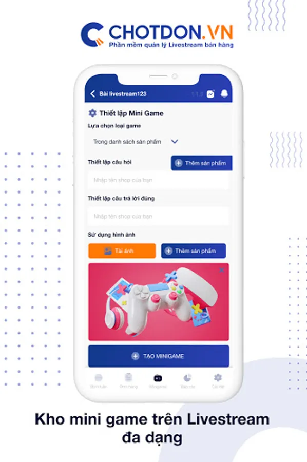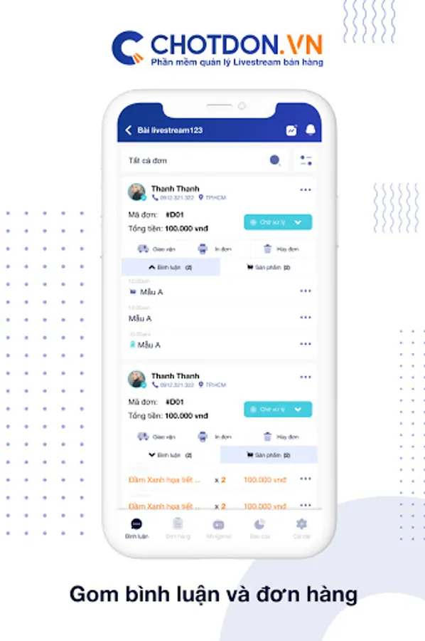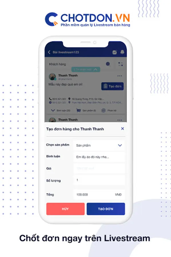 ChotDon - Livestream management software for sales on 2 Web and app platforms, maximum support for your livestream work. With the following outstanding functions: