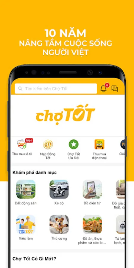 Bất kể thứ nào bạn cần trong từng giai đoạn cuộc đời, đều có thể tìm tại Chợ Tốt. Ngoài trang recommerce, rất nhiều ngành hàng chiến lược được tích hợp vào ứng dụng Chợ Tốt để giúp bạn tìm việc làm, sắm sửa đồ đạc, mua nhà mua xe: