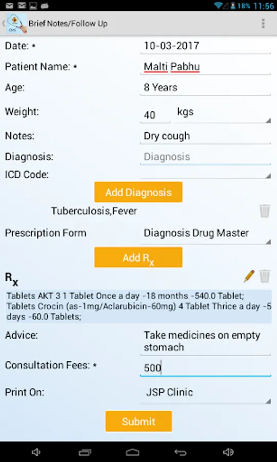 8. Recording diagnosis of patient, linked to diagnosis master for quick data entry
