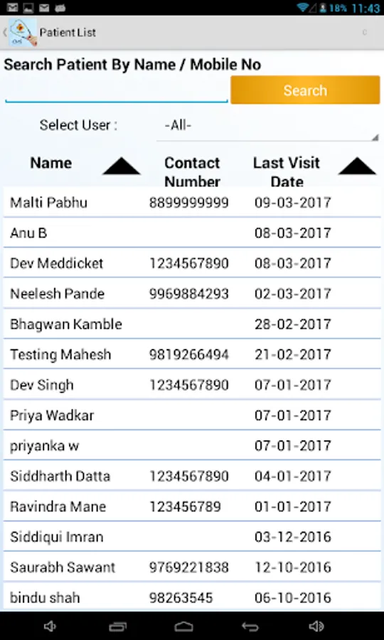 5. Search patient list by first name / last name and/or mobile number