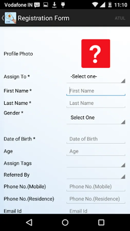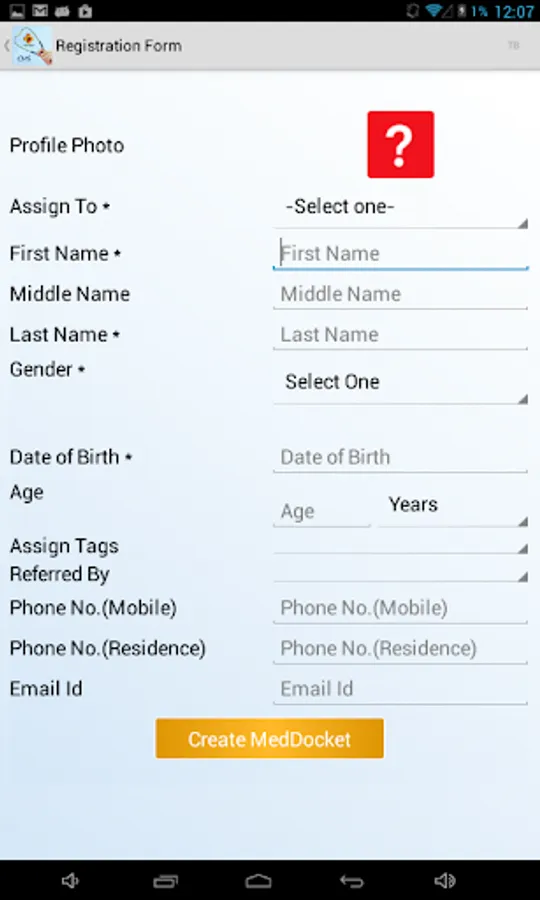 2. Fields for Patient registration