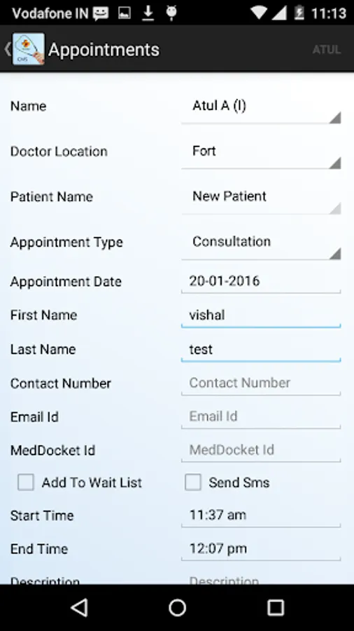 * SMS reminder to patient on date of appointment