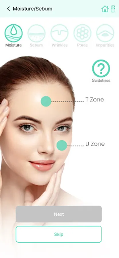 For skin: Moisture, Pores, Wrinkles, Acne, Skin type