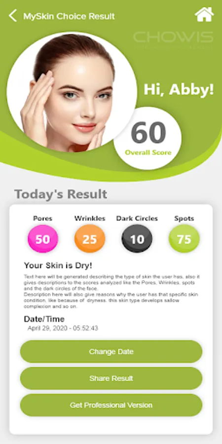 The new mySkin Choice is a powerful skin analysis system that’s available on your smartphone and tablets. You can analyze your face using our online skin analysis ( web-based skin analysis ) or by using our software application.