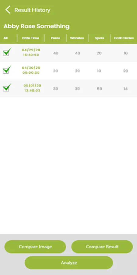 1. mySkin Choice Full Facial Contactless Analysis will show you the analyzed parameters of your face.