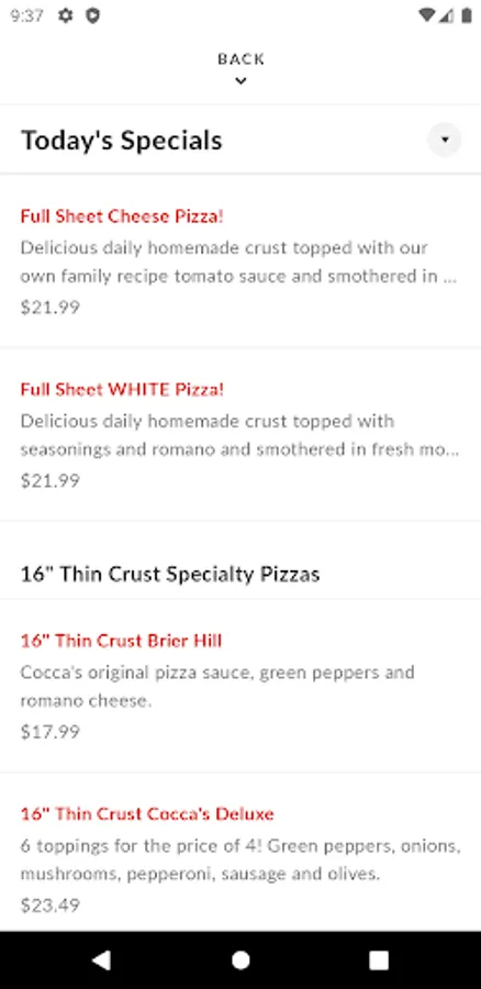 With the Cocca's Pizza mobile app, ordering food has never been easier. Whether you're looking for a quick snack or a full meal, we've got you covered. Just browse our easy-to-use menu, customize it how you'd like, place your order using our secure payment system, and sit back! A push notification will alert you when your order will be ready.