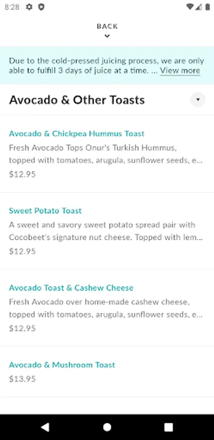 With the Cocobeet mobile app, ordering food has never been easier. Whether you're looking for a quick snack or a full meal, we've got you covered. Just browse our easy-to-use menu, customize it how you'd like, place your order using our secure payment system, and sit back! A push notification will alert you when your order will be ready.