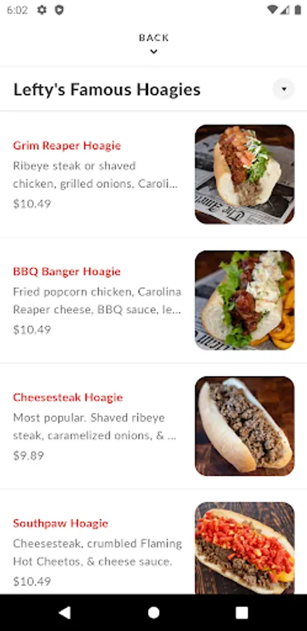 With the Lefty's Cheesesteaks mobile app, ordering food has never been easier. Whether you're looking for a quick snack or a full meal, we've got you covered. Just browse our easy-to-use menu, customize it how you'd like, place your order using our secure payment system, and sit back! A push notification will alert you when your order will be ready.