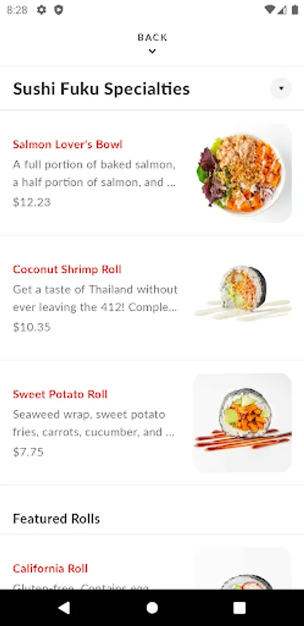 With the SushiFuku mobile app, ordering food has never been easier. Whether you're looking for a quick snack or a full meal, we've got you covered. Just browse our easy-to-use menu, customize it how you'd like, place your order using our secure payment system, and sit back! A push notification will alert you when your order will be ready.