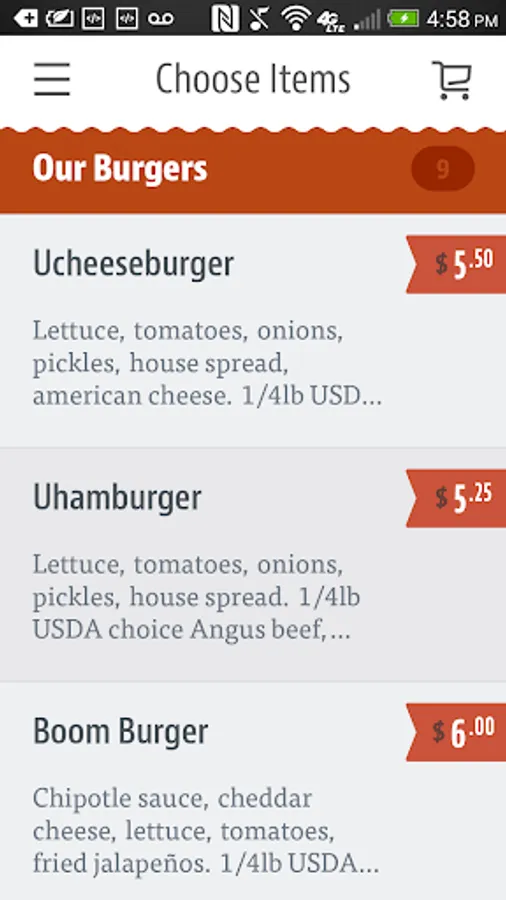 With the UBurger mobile app, ordering food has never been easier. Whether you're looking for a quick snack or a full meal, we've got you covered. Just browse our easy-to-use menu, customize it how you'd like, place your order using our secure payment system, and sit back! A push notification will alert you when your order will be ready.