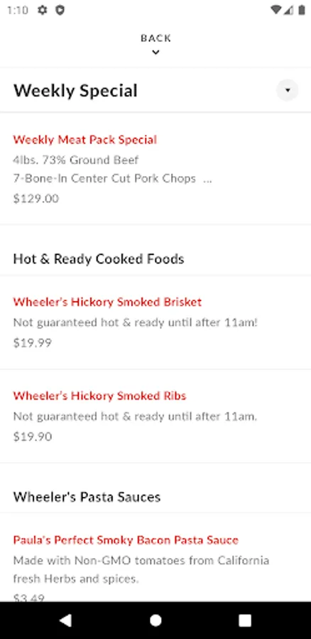 With the Wheeler's Meat Market mobile app, ordering food has never been easier. Whether you're looking for a quick snack or a full meal, we've got you covered. Just browse our easy-to-use menu, customize it how you'd like, place your order using our secure payment system, and sit back! A push notification will alert you when your order will be ready.