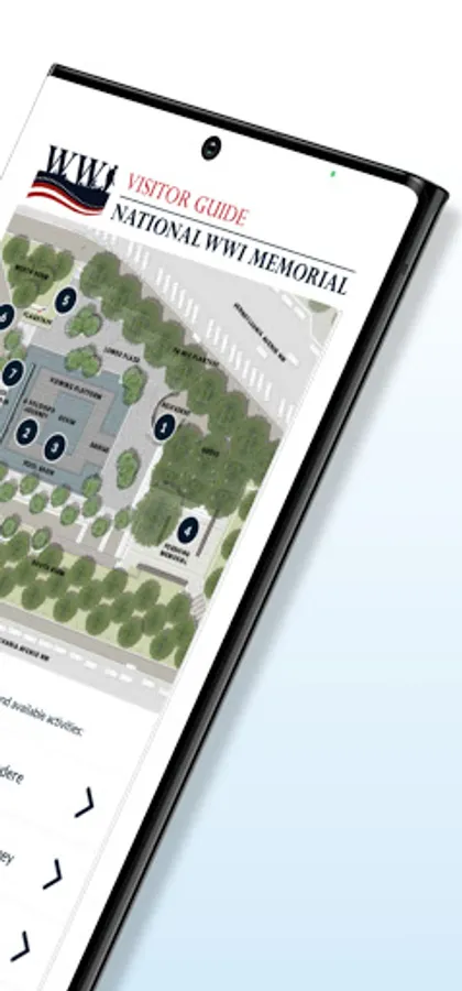 visitor guide map pageThe app provides an overview of the memorial and the various area.