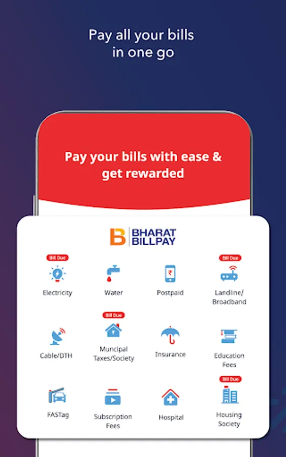• Pay electricity bill, water bill, Landline bills, Broadband, Insurance, School Fees, Fastag, etc.