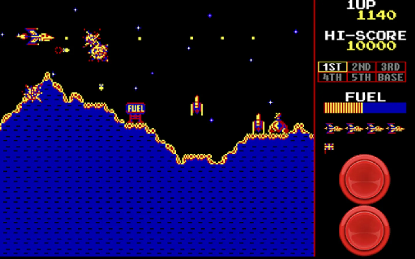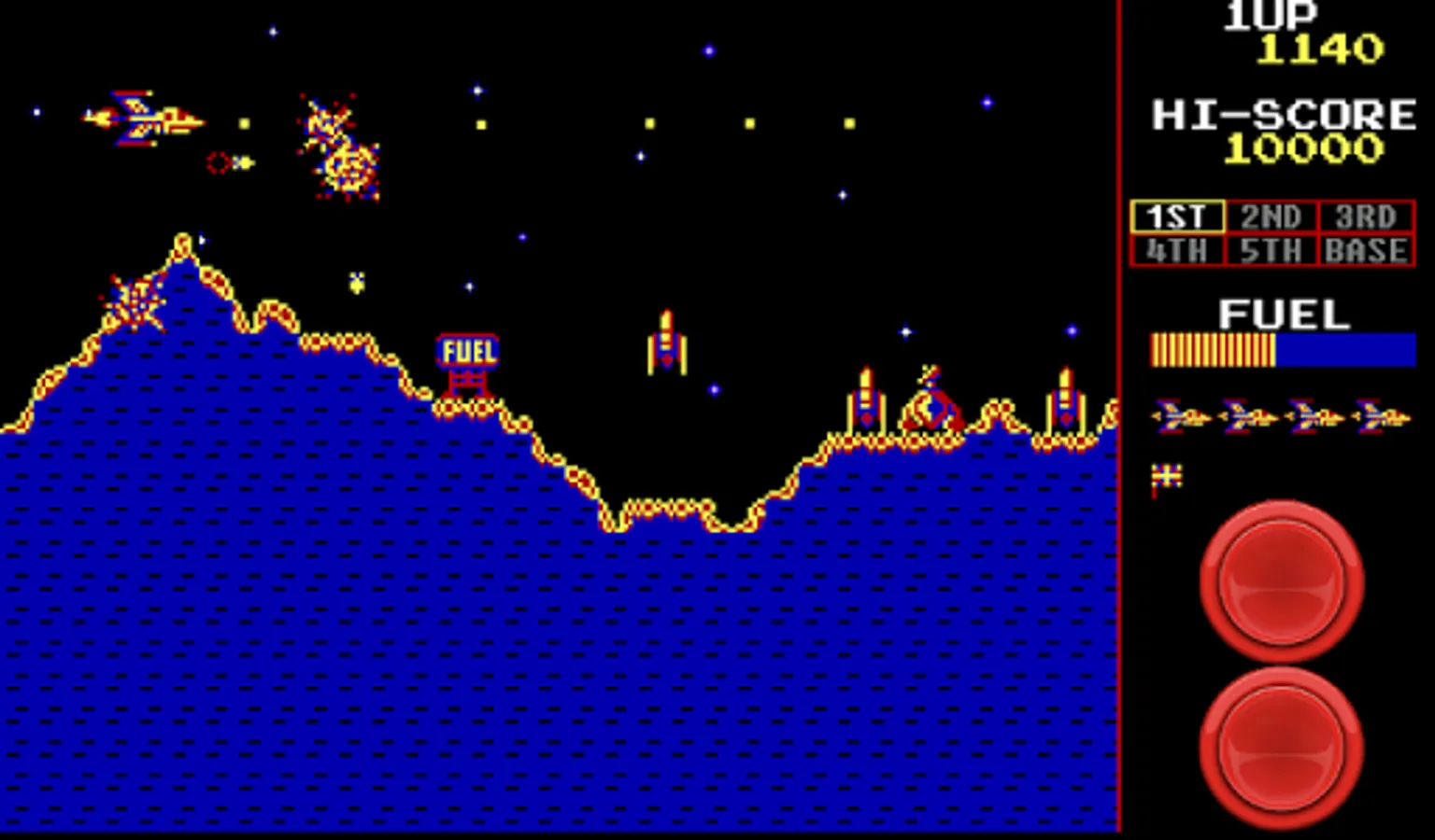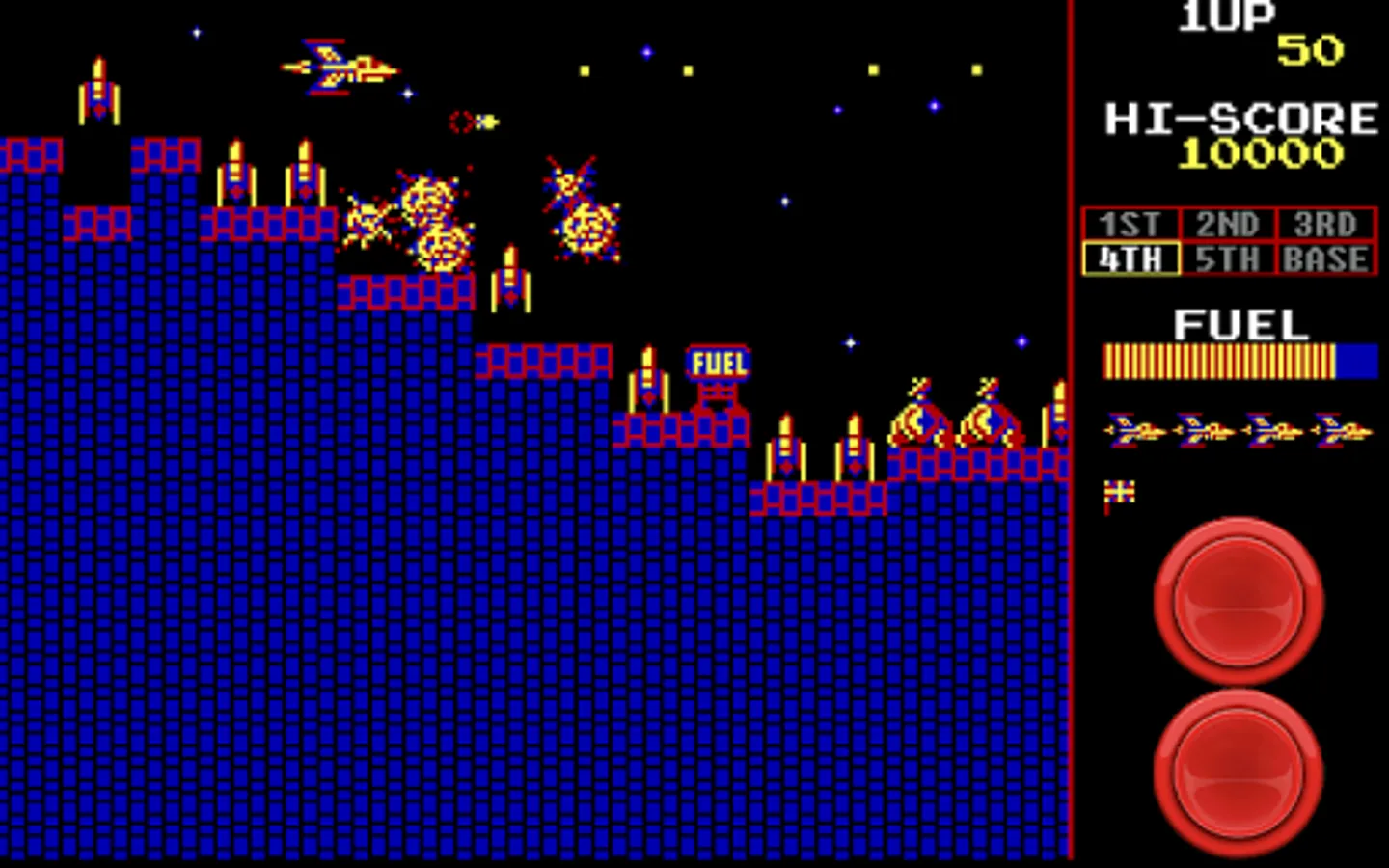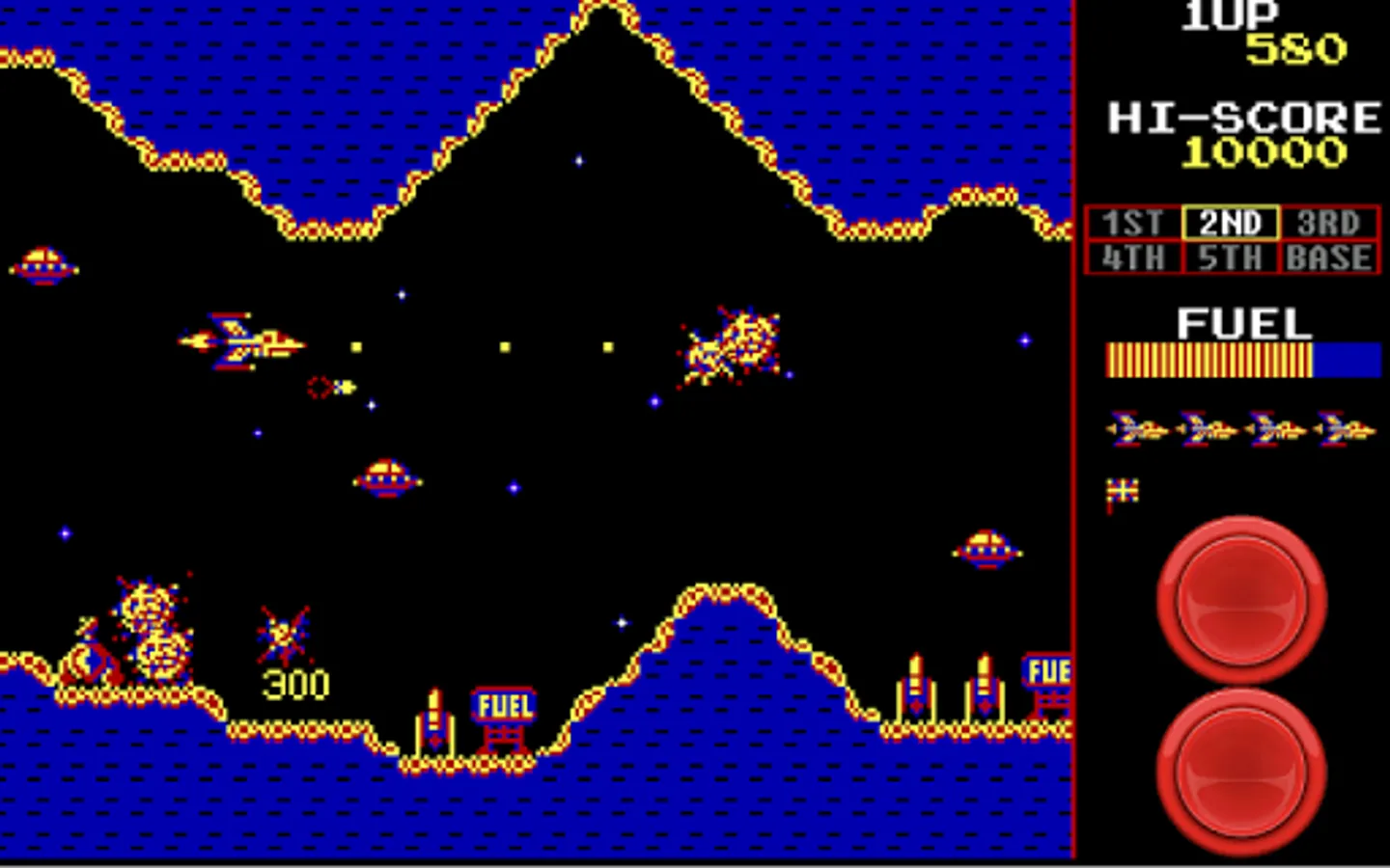 Push your skills to the edge with this free retro arcade game Scrambler. Great game-play that’s typical of old games. A side scrolling shooter game where you navigate your ship through 6 different stages packed with menacing enemies, on the way to destroy the final Enemy Base.
